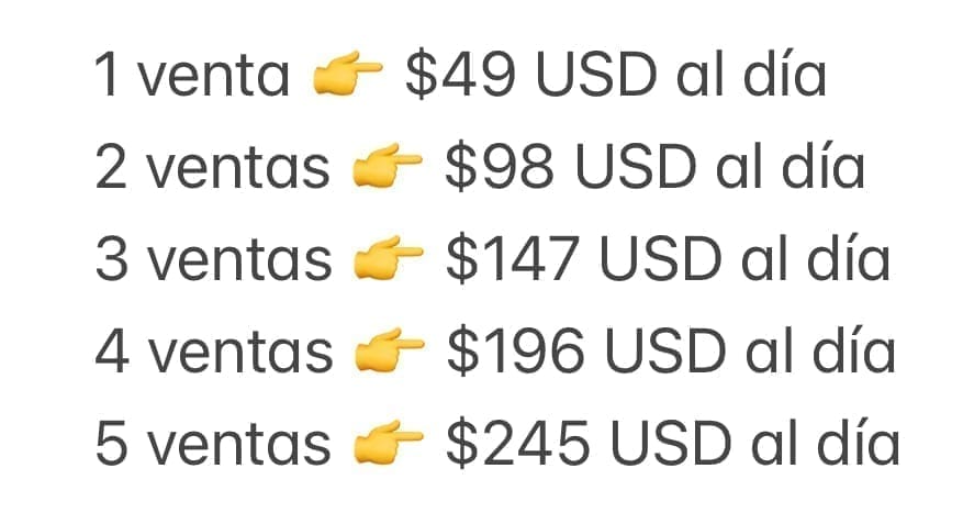 El objetivo es simple: ayudarte a montar un sistema de ventas automatizado que te permita generar, como mínimo, una venta diaria ($50 USD por día) y escalar tus ingresos hasta los $1,470 USD mensuales o más.