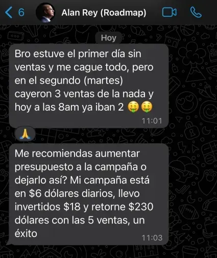 El acceso a Hoja de Ruta 100K tiene un valor único de $49 USD. Además, te recomendamos contar con aproximadamente $20 USD adicionales para invertir en tus primeras campañas de Meta Ads durante la primera semana. Con esa inversión inicial, podrás generar fácilmente entre 3 y 4 ventas (equivalentes a $150–$200 USD en facturación), lo que te permitirá: